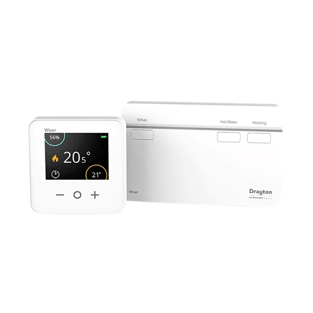 The Drayton Wiser Smart Thermostat Kit 2 is suitable for conventional (regular) boilers and heating systems with a separate hot water cylinder. The Drayton Wiser Smart Thermostat Kit 2 gives you complete control of your heating & hot water via the Wiser Heat App. Drayton Wiser Smart Radiator Thermostats can be added to the system at any point to provide room-by-room temperature control.