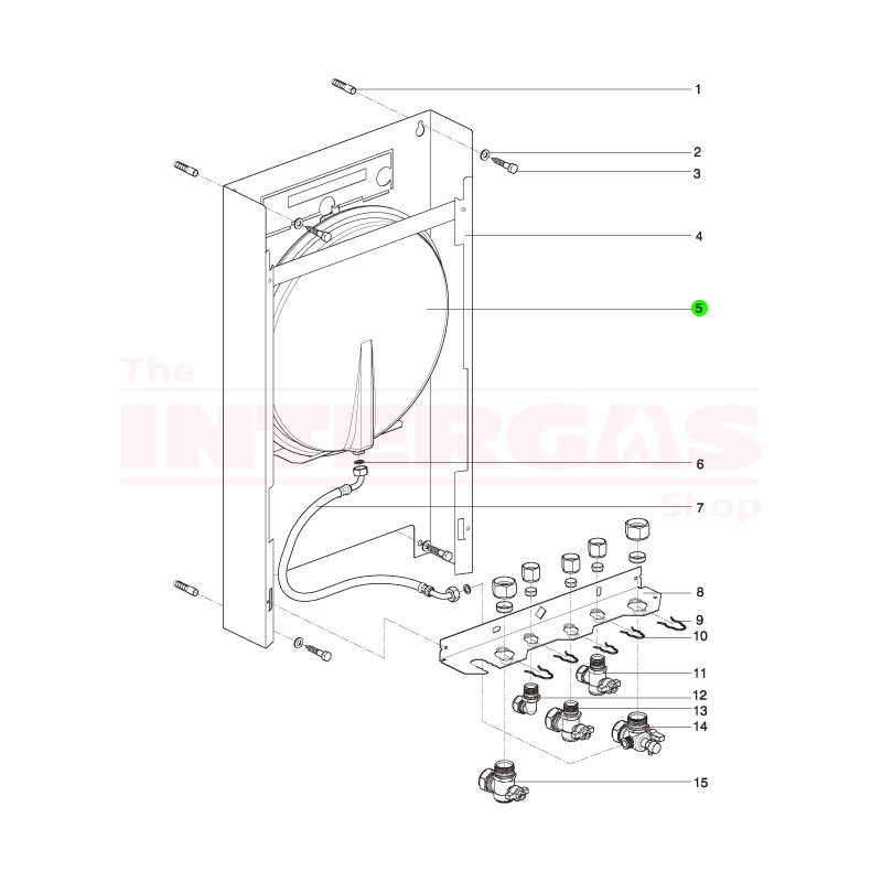Intergas Rapid Expansion Vessel (864067)Â is number 5 on the exploded diagram and fits the following Intergas boilers: