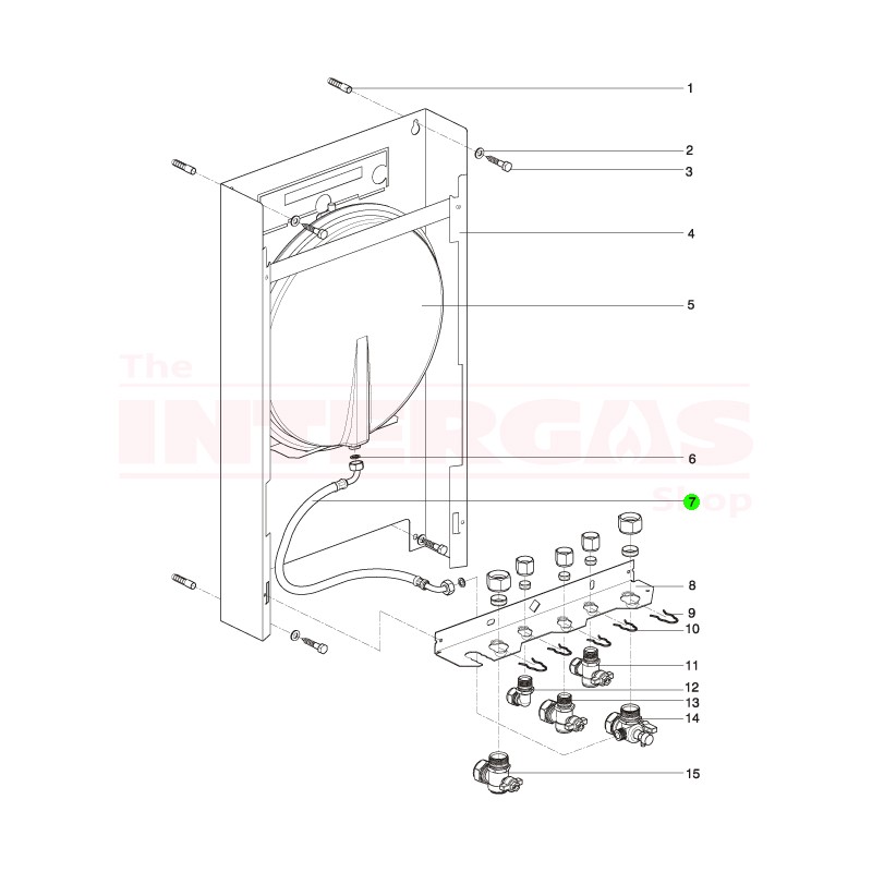 Intergas Expansion Vessel Hose (859617)Â is number 7 on the exploded diagram (number 5 on Intergas Rapid exploded diagram) and fits the following Intergas boilers: